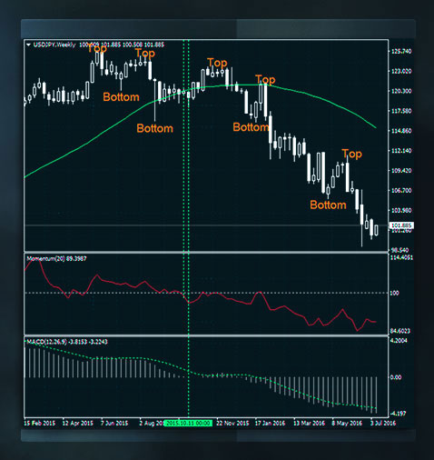 发现趋势一般的方法是目测。找到连续的更高的顶部和更高的底部表明趋势向上,出现连续的更低的顶部和底部表明趋势向下。等高的顶部和等高的底部表明市场横盘整理、无趋势。 尽管判断顶部和底部事后看来非常简单,交易员、尤其是初学者发现很难找到当前的趋势,这的确需要一些练习。判断趋势另一个常用的方式是在价格图表上附加用来找到市场方向的技术工具。技术指标和震荡指标 就属于这一类别,它们基于归纳统计等统计学概念。