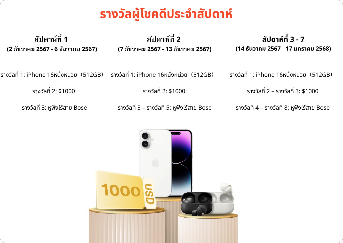 iPhone 16 เงินสด 1,000 หยวน และของรางวัลอื่นๆ